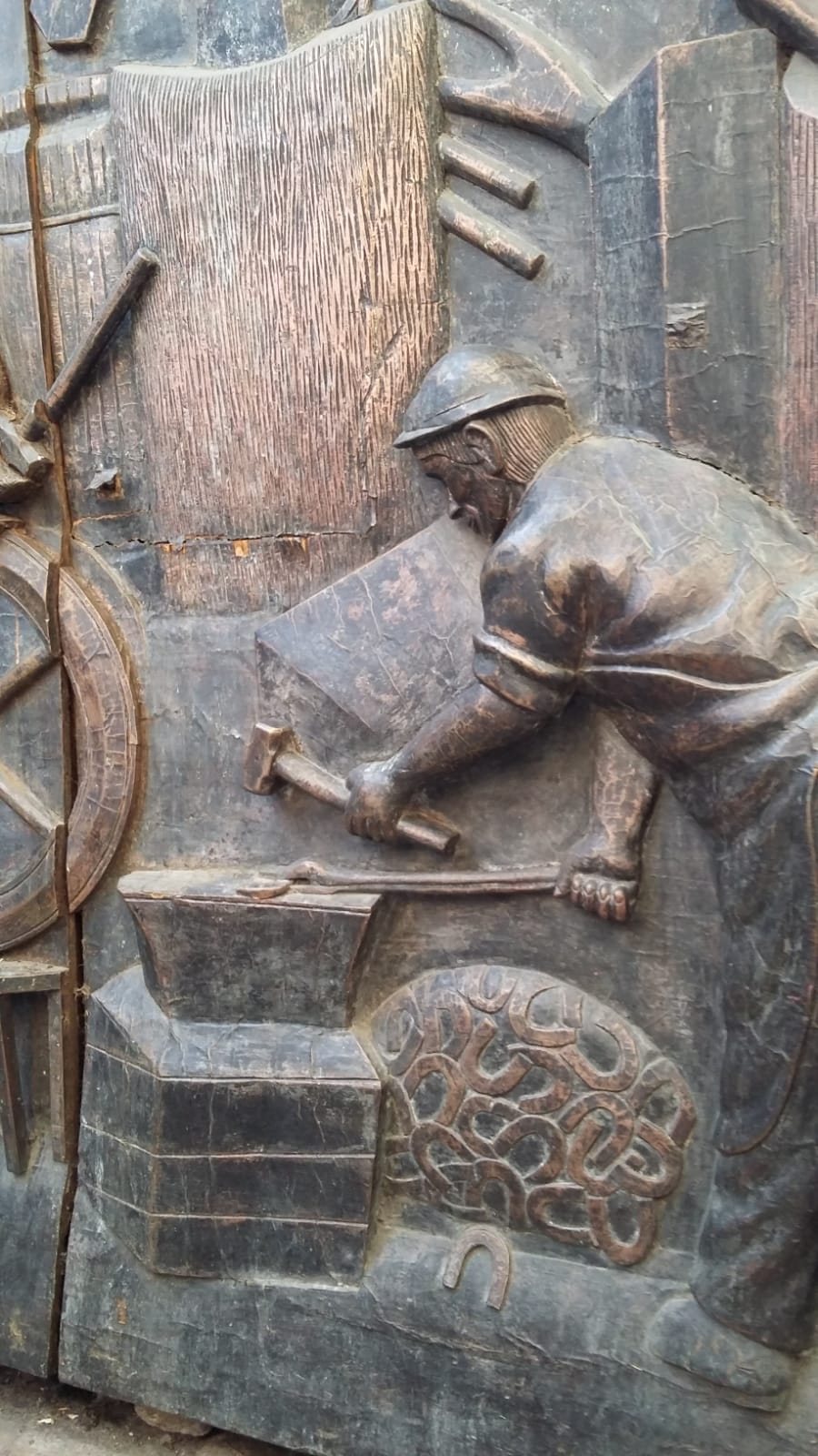 Le immagini che presentiamo oggi rappresentano un omaggio al fedele servitore dell’uomo: il cavallo. Se si condivide l’idea che “l’Arte Povera” si caratterizza anche per l’uso di materiali poveri allora questo “Cavallo di ferri” ne è un concreto esempio. Per realizzarlo Luigi Martucci (Maestro Maniscalco), Davide Balistreri (Allievo Maniscalco) e Sebastiano Santaniello (Allievo Maniscalco) hanno messo insieme circa 350 ferri di cavallo e di mulo e utilizzato circa 30 raspe da zoccolo esauste. Parte dei ferri è stata prodotta nel corso degli anni dagli allievi maniscalchi civili e militari e, pertanto, non risultava applicabile ai quadrupedi. Altri ferri, invece, sono provenienti dalla sferratura dei cavalli di servizio. L’opera d’arte è stata prodotta sulla base del disegno realizzato della dottoressa Virginia Paolino, medico veterinario, che alla professione abbina un indubbio talento artistico. Dalla collaborazione è scaturito un destriero, coda al vento, a grandezza naturale.