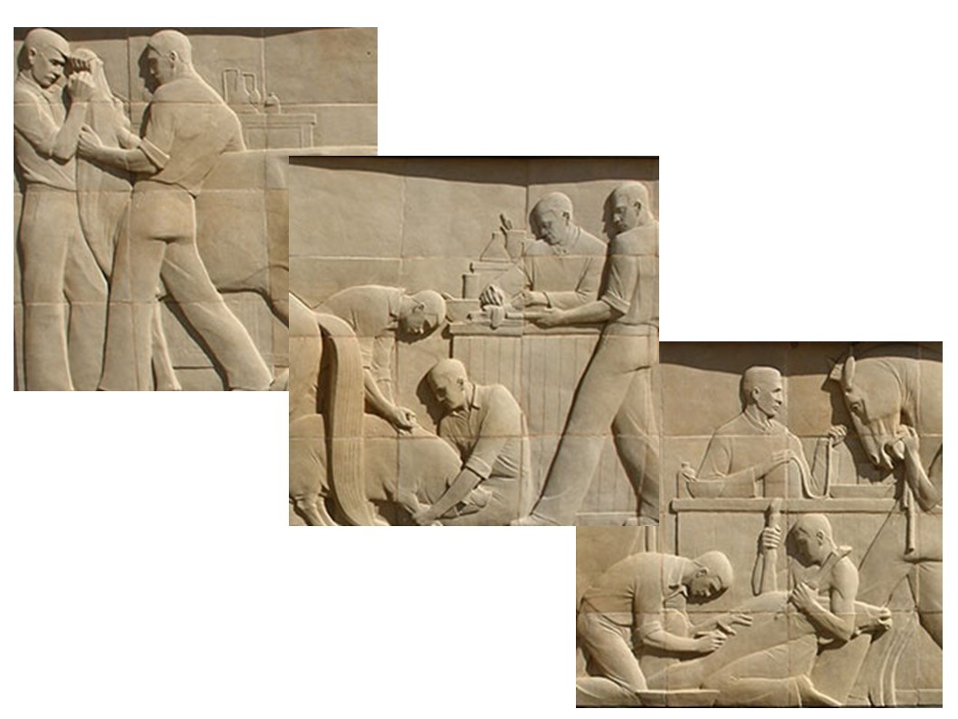 Il Dottore Gentile è una scultura realizzata dall’artista di origine danese Christian Petersen (1885 – 1961). Fu il primo docente artista residente in un College degli Stati Uniti. Nel 1938 realizzò la statua e il murale, presentati nell’immagine di oggi, e posti all’ingresso della Facoltà di Medicina Veterinaria dell’Università dell’Iowa. Il murale raffigura l’attività del veterinario su tre diversi animali, bovino suino e cavallo, mentre la statua, collocata di fronte al murale, è un omaggio alla professionalità veterinaria colta nel suo versante sentimentale di affezione quasi francescana verso gli animali (Brunori e Cianti, 2020).