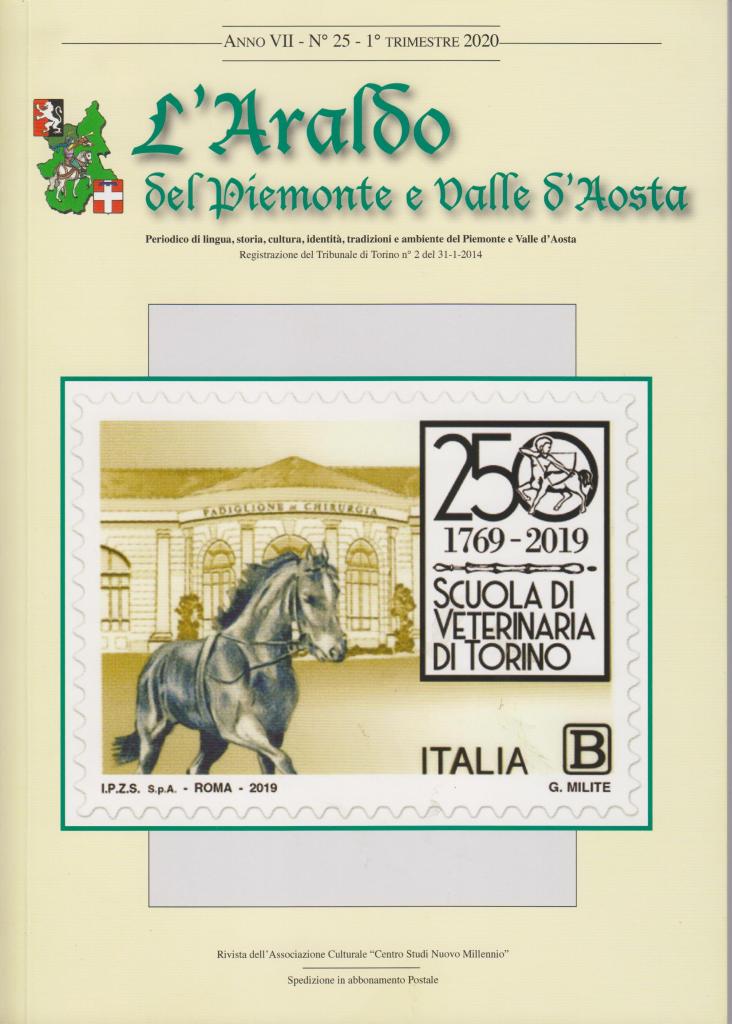 La rivista L’ Araldo del Piemonte e della Valle d’Aosta ha dedicato la copertina del numero I del 2020 al francobollo commemorativo dei 250 anni della Scuola di Veterinaria di Torino. Nello stesso numero è pubblicato l’articolo di Mario Gennero I 250 anni della Scuola Veterinaria Torinese.