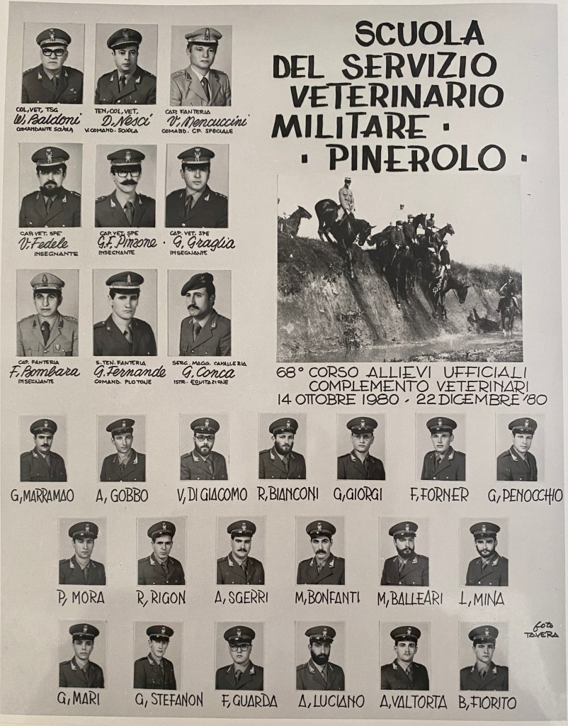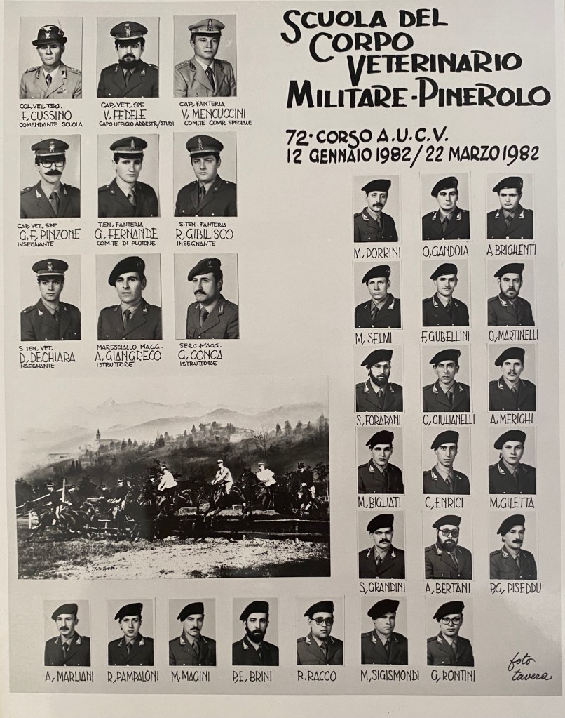 Al 72° Corso (1982) parteciparono: Adalberto Merighi, che sarà ordinario di Anatomia veterinaria a Torino; Stefano Grandini che sarà Vicepresidente dell’Ordine di Bologna e Oscar Gandola, delegato Enpav dell’Ordine di Como e sindaco di Cerano d’Intelvi, comune che alcuni anni fa ha dedicato un monumento ad Iroso, ultimo mulo con le stellette.