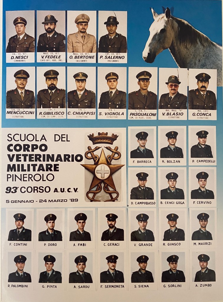 Al 93° Corso (1989) parteciparono Simone Siena che sarà Comandante CEMIVET e Capo Reparto Veterinario del Comando di Sanità e Veterinaria; Beniamino Cengi Goga che sarà docente di Ispezione degli Alimenti nell’Università di Perugia e Alessandro Zumbo che sarà docente di Zootecnica Speciale all’Università di Messina; Alberto Guasco che agli interessi professionali ha affiancato anche quelli per la storia del monte Chaberton a cui ha dedicato varie mostre e libri.