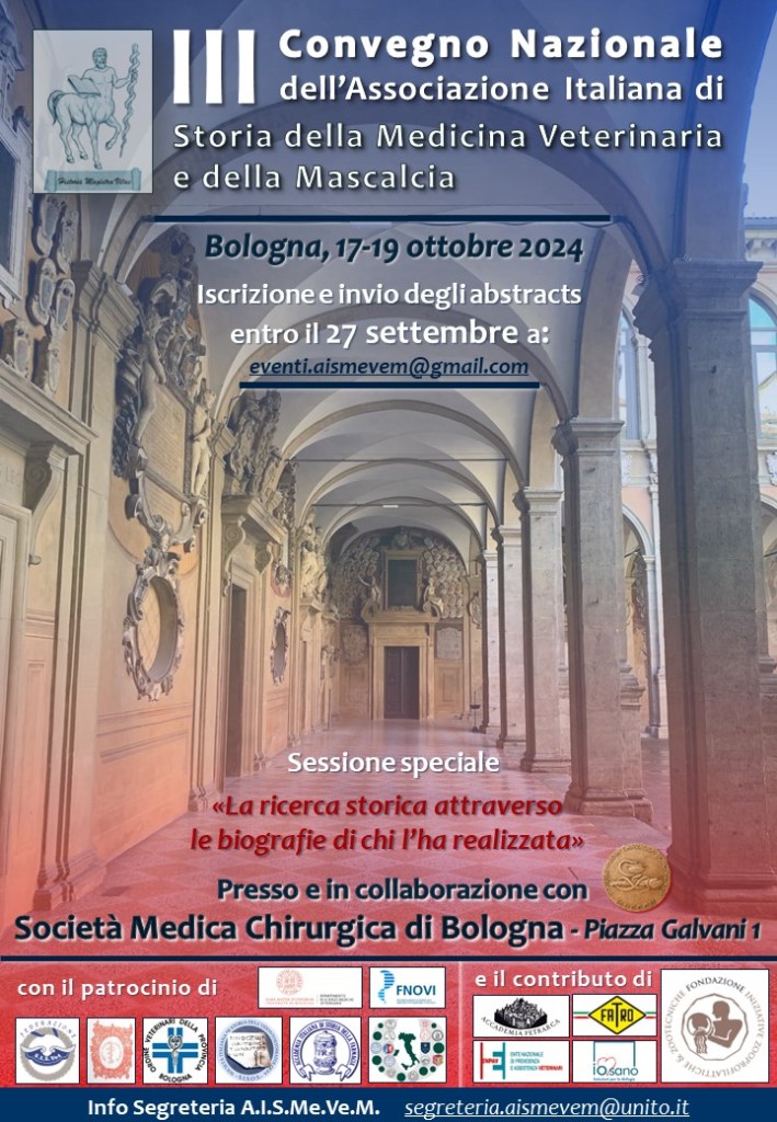 Il terzo Convegno A.I.S.Me.Ve.M. si terrà presso la prestigiosa sede dell’Archiginnasio di Bologna dal 17 al 19 ottobre prossimi. Di seguito il materiale informativo
