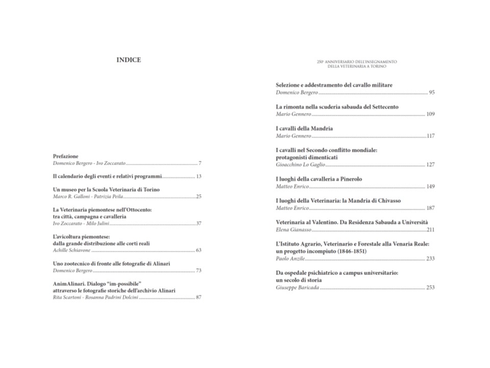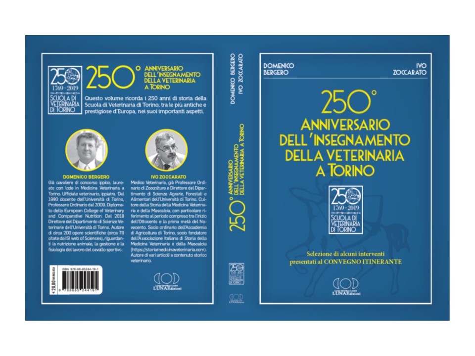 LUNAEdizioni ha pubblicato una raccolta di alcuni degli interventi che si sono susseguiti in occasione delle varie tappe del convegno itinerante con cui il Dipartimento di Scienze Veterinarie dell’Università di Torino ha celebrato i duecentocinquant’anni dalla fondazione della Scuola Veterinaria di Torino, che si sono tenute a Fossano, La Mandria di Chivasso, Torino, Venaria e Grugliasco. Il volume può essere acquistato direttamente presso l’editore scrivendo a valperg@tin.it
