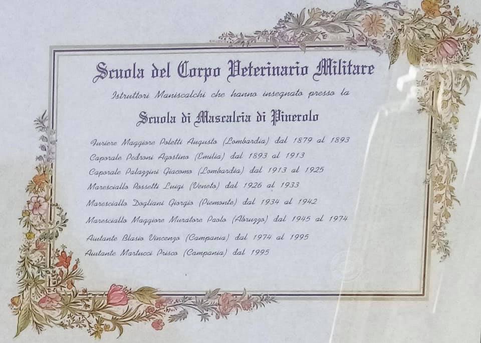Per chi conosce la Città di Pinerolo, vicino a Torino, non è difficile immaginare come il visitatore che, sul finire dell’Ottocento ma anche dopo, vi giungeva in treno nella piccola stazione liberty potesse rimanere affascinato dal tintinnio che avvolgeva l’atmosfera. Poco distante dalla stazione, in viale Mamiani, sorgeva infatti la Scuola di Mascalcia militare ed il ritmico tintinnio altro non era che il suono dei martelli sulle incudini con le quali gli allievi sottufficiali si esercitavano a forgiare i ferri per i cavalli. Un vero e proprio concerto di incudini.