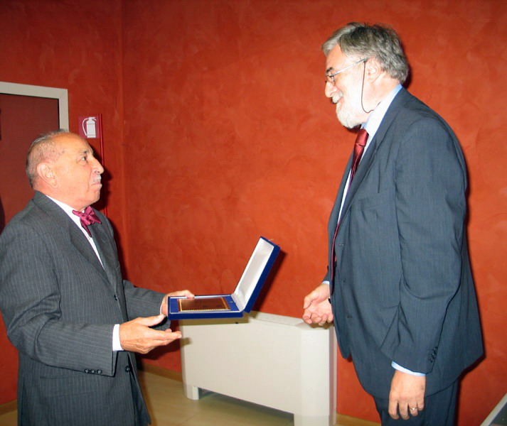 Il Presidente dott. Mario P. Marchisio (a dx) mentre consegna il premio Antonio Zanon al prof. Marco R. Galloni