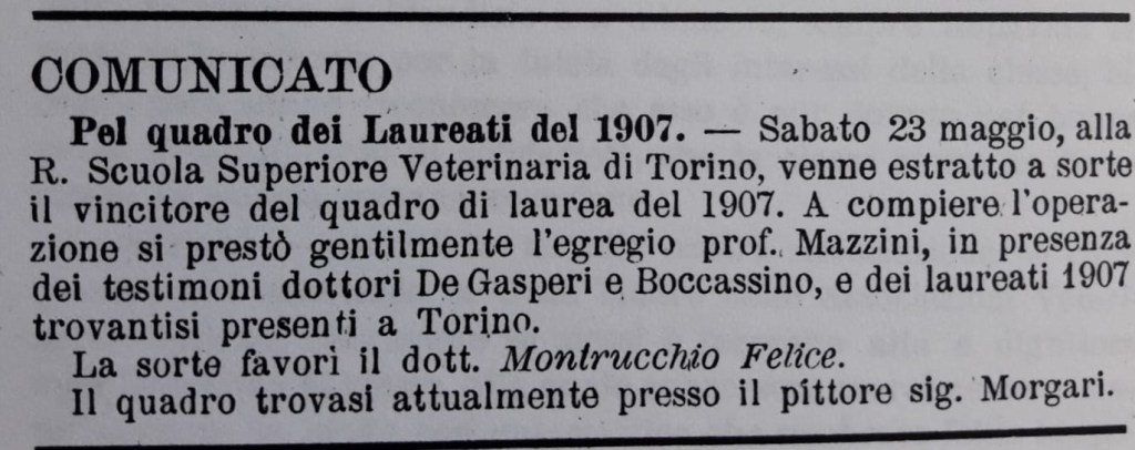 Il prof. Roberto Bassi ed i laureandi in Zooiatria del 1907. Olio su tela di Paolo Emilio Morgari jr. Museo di Scienze veterinarie. Università di Torino. Dal “Moderno Zooiatro” 1907